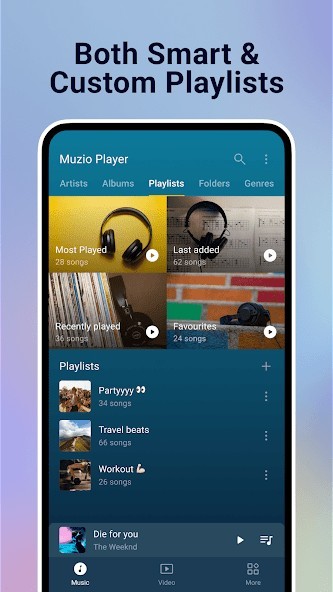 🎵 With smart & custom playlists support, Muzio elevates your offline music player experience to a new level. What's more? With Muzio's backup/restore option, enjoy a worry free music play experience in this perfect offline audio player.
